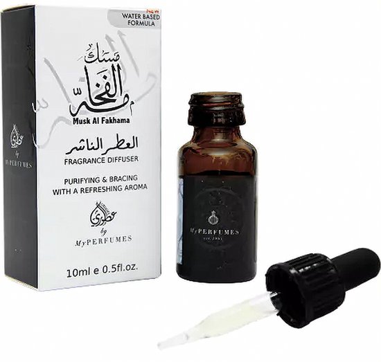Ervaar de luxe van Musk Al Fakhama, een oosterse parfumolie op waterbasis met een verfrissende mix van citrus en bloemen. Geniet van de levendige geuren van citroen, bergamot, rozen, jasmijn en saffraan, die samen een kalmerende en serene ambiance creëren, perfect voor elke ruimte.