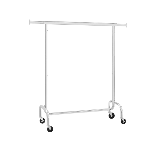 Kledingrek met wieltjes, uittrekbare stang voor zware belasting, draagvermogen 130 kg, 45 x (110-150) x 162,9 cm, kapstok, metaal, verchroomd
